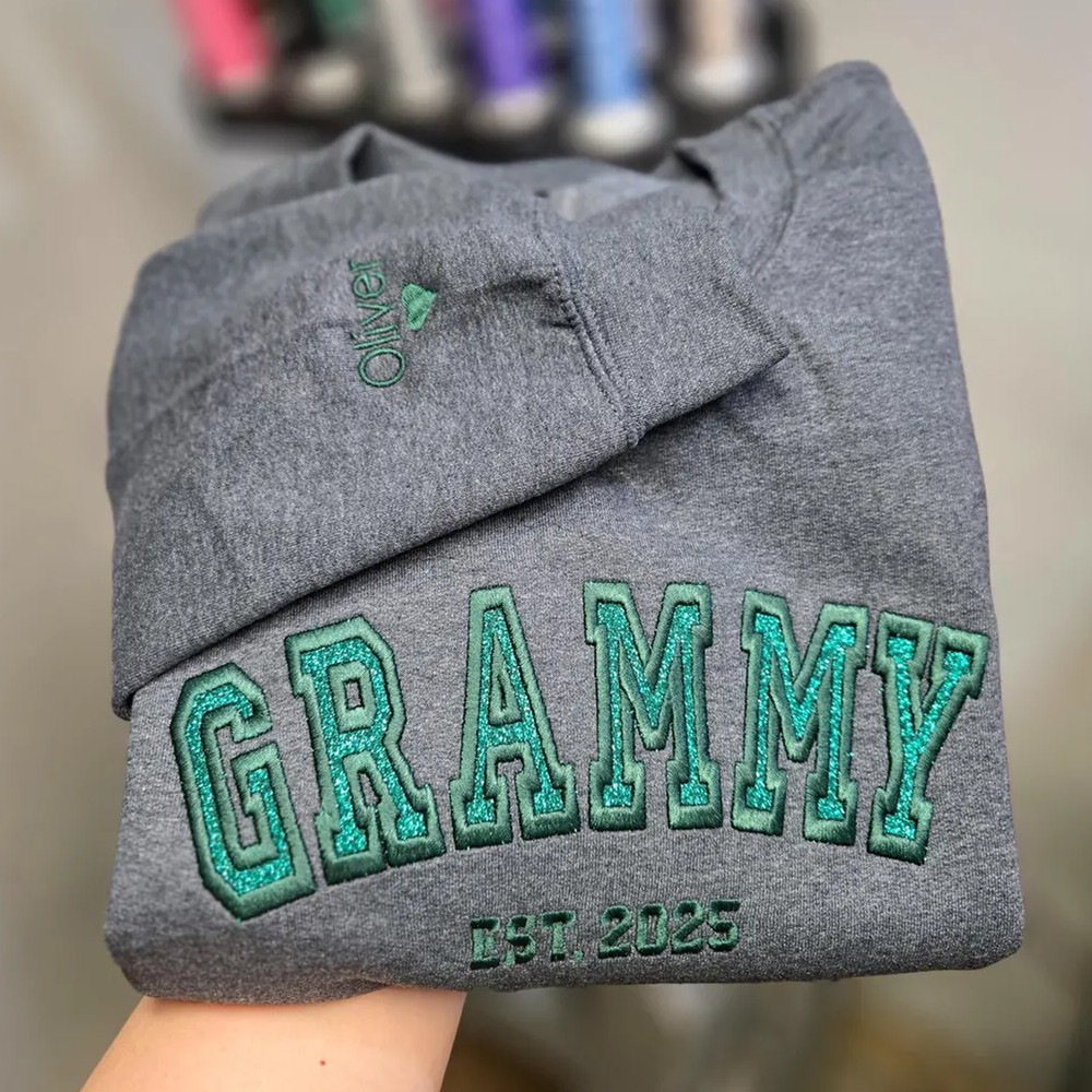 Custom Embroidered Glitter Grandma Mama Sweatshirt With Kids Name on Sleeve