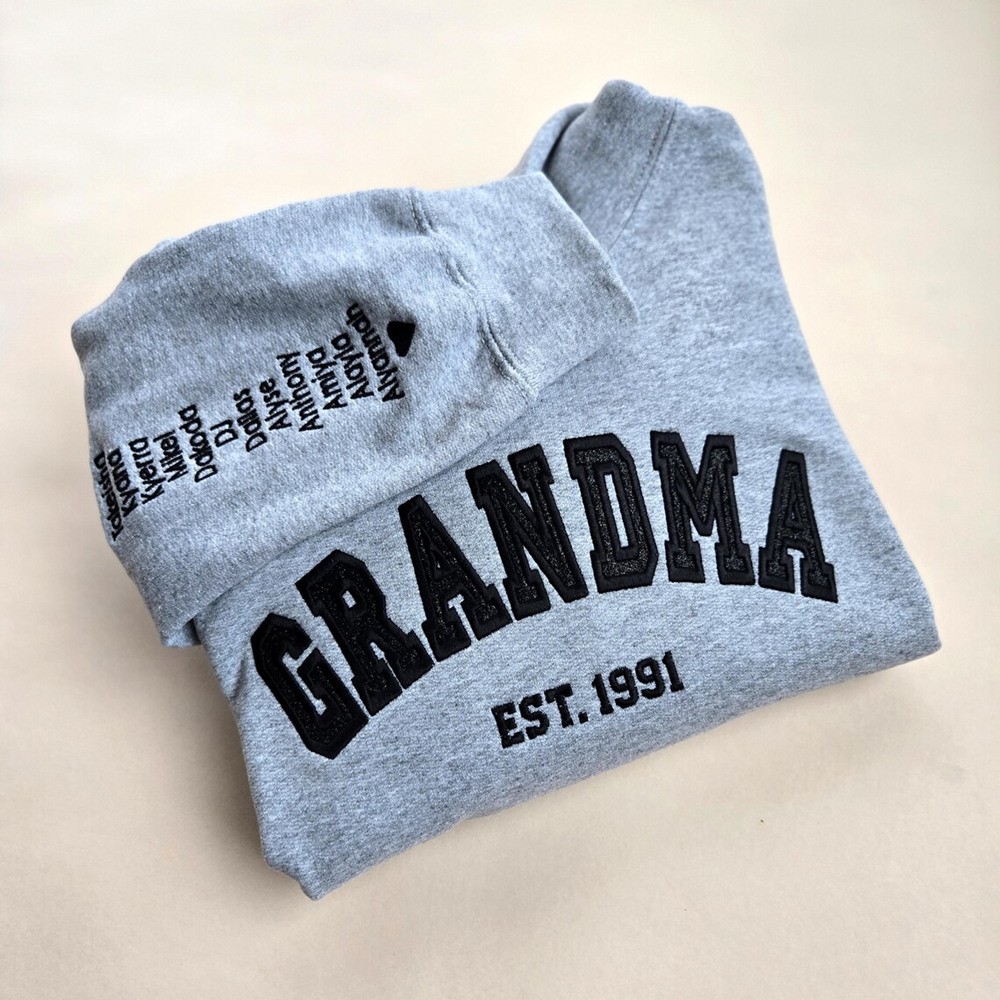 Custom Embroidered Glitter Mama Sweatshirt With Kids Name on Sleeve