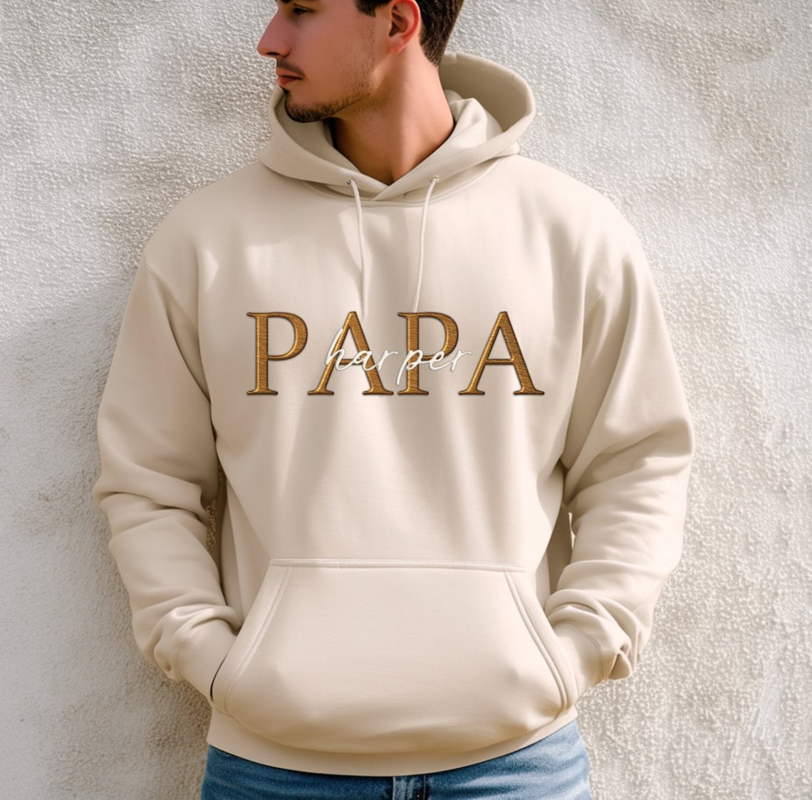 Custom Embroidered PAPA Sweatshirt With Kid Name For Father's Day Gift